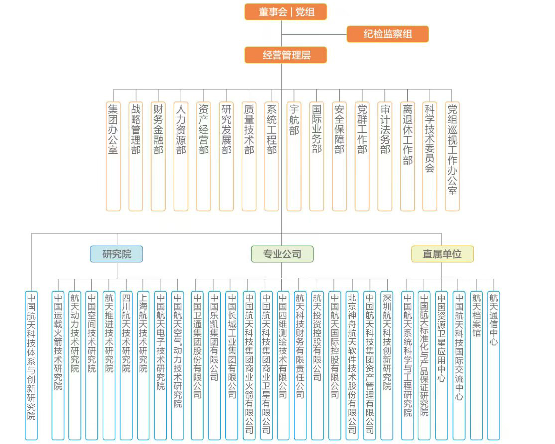 中国航天科技集团有限公司辖有1家体系院、8家研究院、12家专业公司及6家直属单位,拥有14家境内外上市公司,分布在北京、上海、西安、成都、重庆、天津、深圳、海南等地。现有从业人员17万余名。主要从事运载火箭、各类卫星、载人飞船、货运飞船、深空探测器、空间站等宇航产品,以及战略导弹、战术导弹、无人系统等武器产品的研究、设计、生产、试验和发射服务,同时,依托航天核心技术与资源,积极培育商业航天、低空经济等新质生产力,大力发展氢能、高端装备、节能环保、先进材料、新一代信息等航天技术应用及服务产业。长期以来,为国家经济社会发展、国防现代化建设和科学技术进步作出了卓越贡献。