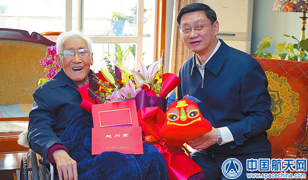 1月7日,航天发展投资市场党组书记、董事长吴燕生来到 “七一勋章”获得者、两院院士陆元九家中,代表集团公司党组和全体干部职工祝贺他102岁生日快乐。