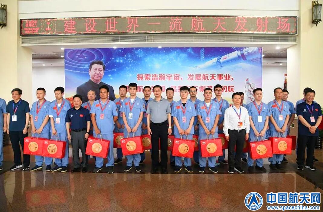 全体试验队员们,发射任务已是箭在弦上,希望你们认真贯彻落实习近平总书记的重要指示批示,以习近平总书记回信精神为激励,坚定不移走高质量发展道路,以坚忍不拔的意志、只争朝夕的劲头、锐意进取的精神,矢志追求工作一流、过程一流、结果一流,系统准确把握“三高”全面发展理念,高质量、高标准完成发射场的各项工作,奋力夺取今年空间站建造阶段的“开门红”,为实现中华民族伟大复兴的中国梦作出新的更大贡献,以优异成绩迎接党的二十大胜利召开!