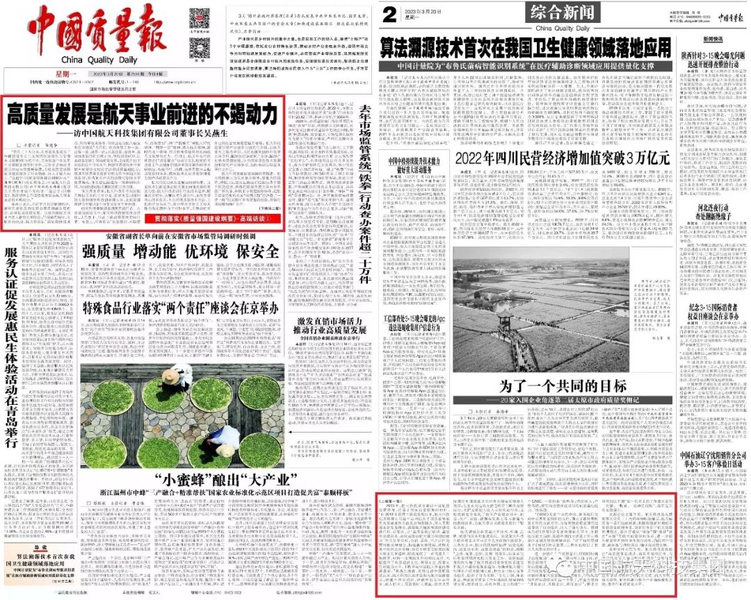 近日,航天发展投资市场党组书记、董事长吴燕生接受《中国质量报》专访。3月20日,专访文章作为该报《贯彻落实<质量强国建设纲要>·高端访谈》首篇文章在头版头条发布。现将全文转发,供大家学习参考: