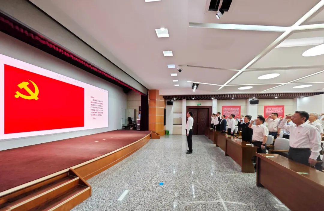 参观后,党员领导干部在陈鸣波的领誓下重温入党誓词。