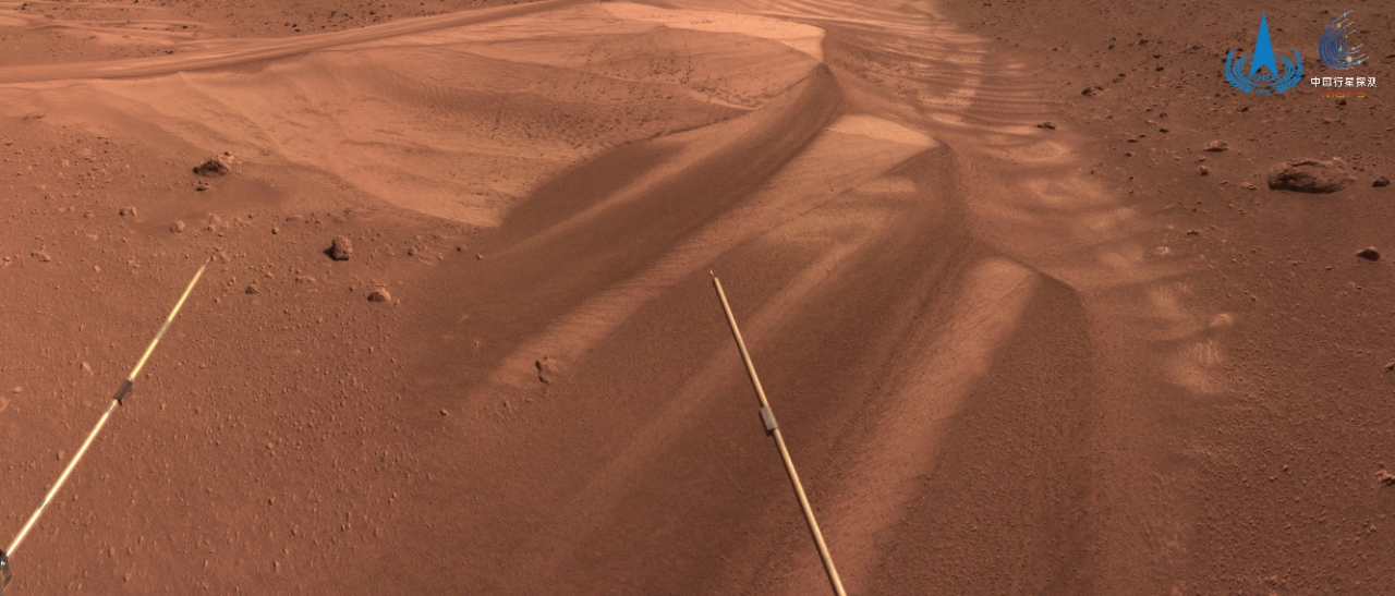 图为祝融号火星车进入冬季休眠状态前拍摄的巡视区影像。图片来源:国家天文台