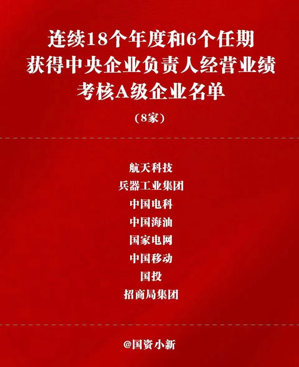 会议还特别通报表扬航天科技集团等8家央企在国资委对中央企业实施经营业绩考核以来,连续6个任期和18个年度均获得A级。
