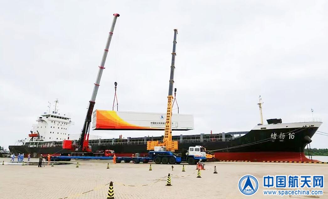 图为长七遥六火箭产品转运现场。屠海超 摄