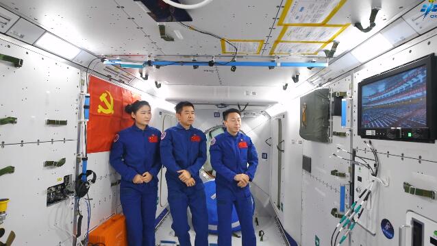 神舟十四号航天员乘组在中国空间站收看党的二十大开幕盛况