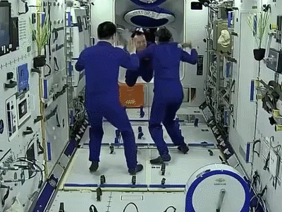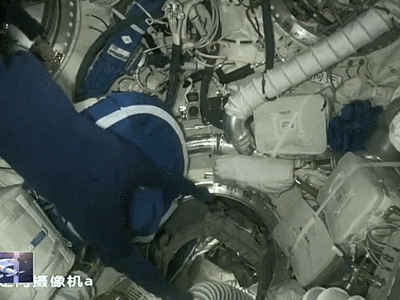 在载人飞船与空间站组合体成功实现自主快速交会对接后,神舟十五号航天员乘组从飞船返回舱进入轨道舱。