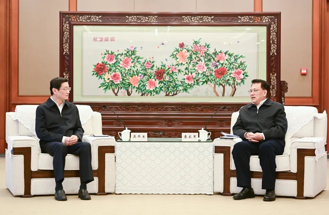 袁家军代表重庆市委、市政府对吴燕生一行的到来表示欢迎,对集团公司长期以来给予重庆的大力支持表示感谢。袁家军表示,重庆在推动区域协调发展、内陆改革开放、长江经济带绿色发展中地位重要、使命特殊,发展前景广阔。落实成渝地区双城经济圈建设国家战略、建设现代化新重庆迎来了重要战略机遇期。希望双方深化产业合作,加大创新力度,共同推动国家战略落地见效,积极服务和融入新发展格局。重庆将营造良好营商环境,为航天科技在渝企业发展提供支持和保障。