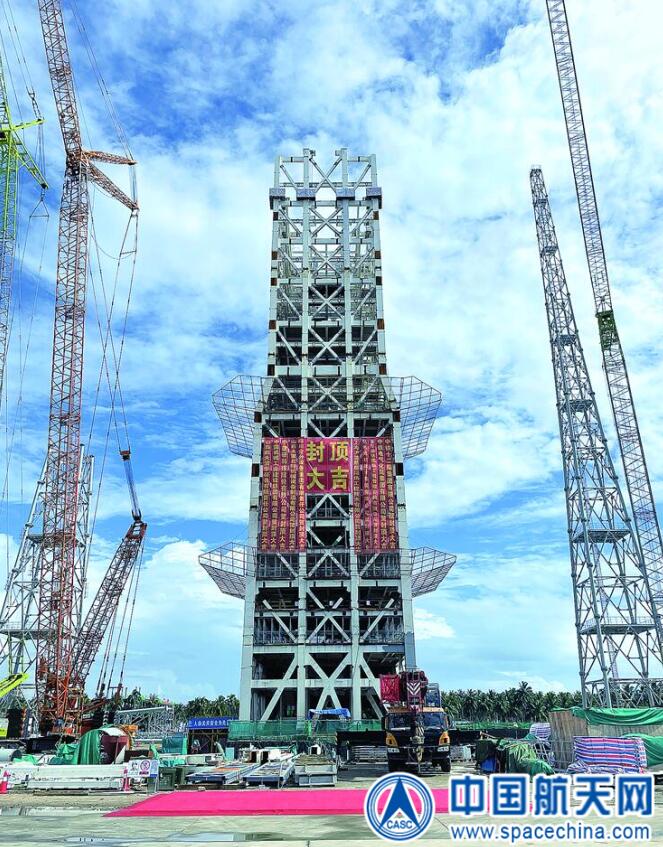 图为海南商业航天发射场一号工位主体塔架封顶现场。 符方珏 摄