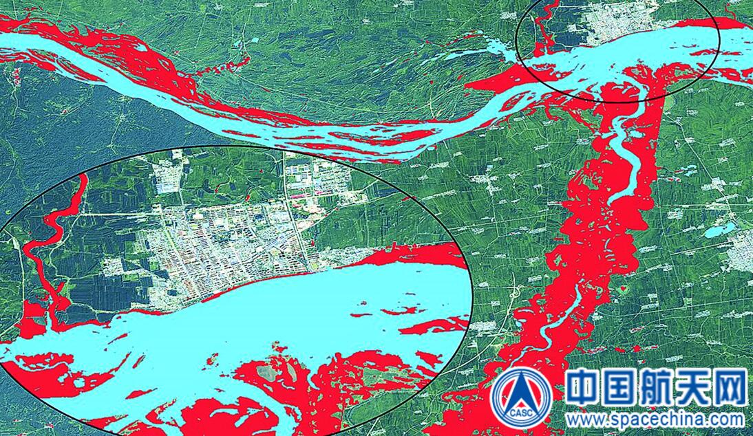 航天恒星利用国产卫星影像——中巴地球资源卫星04A星、环境卫星、高分一号等多光谱影像与高分三号合成孔径雷达卫星影像,选取重点监测区域,结合植被、交通、居民地等地理信息数据,进行了8月汛期前后的城市、农田、河岸等区域的水情对比监测,并第一时间提供给相关部门,支撑防汛抢险、灾害监测、应急管理等指挥工作。(薛燕燕)