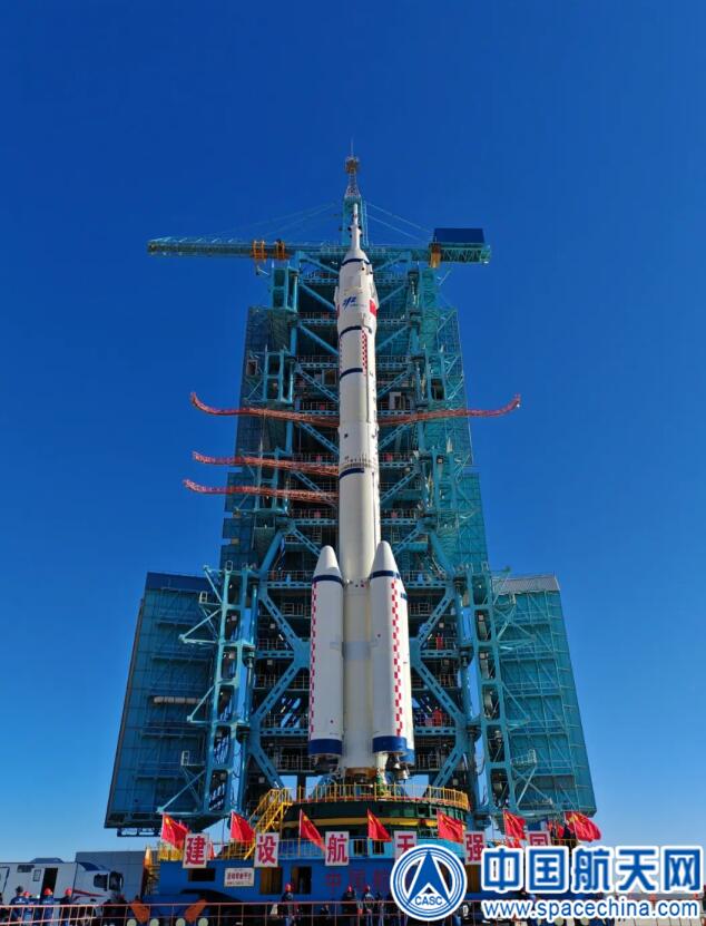 北京时间2023年10月19日,神舟十七号载人飞船与长征二号F遥十七运载火箭组合体已转运至发射区。