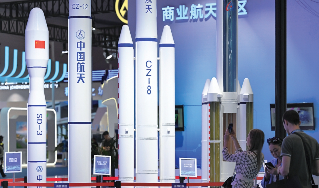 图为第六届西洽会展览现场,火箭模型吸引参观者。何蓬磊 摄