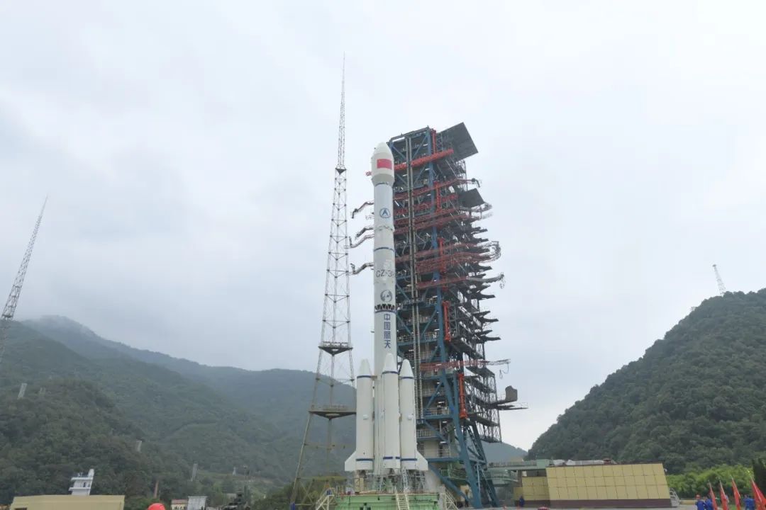 执行本次发射任务的长征三号乙运载火箭由航天科技集团一院抓总研制,属于“金牌火箭”长三甲系列,采用了长三甲系列火箭统一构型设计思路。研制团队针对任务特点对火箭进行了适应性改进和相关产品技术优化,进一步提升火箭可靠性和任务适应能力。本次发射任务恰逢国庆假期,发射队员坚守岗位,以饱满的工作状态,高标准、严要求完成发射场各项工作,不断完善保成功措施,严控质量、防范风险,全力确保发射任务圆满成功。