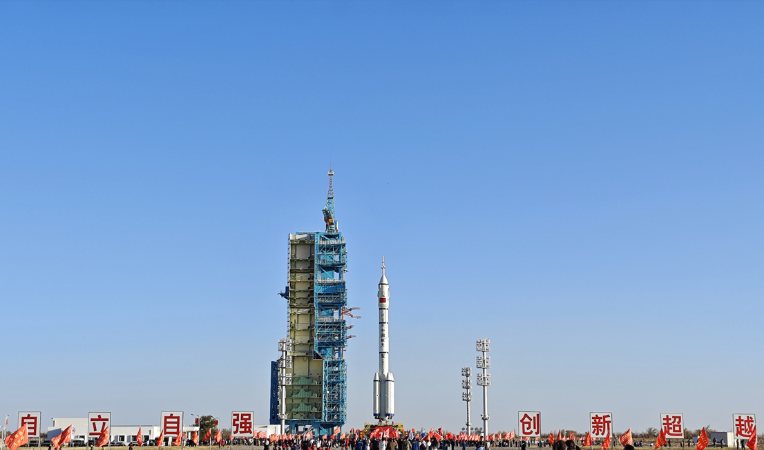 神舟十九号载人飞船与长征二号F遥十九运载火箭组合体转运至发射区