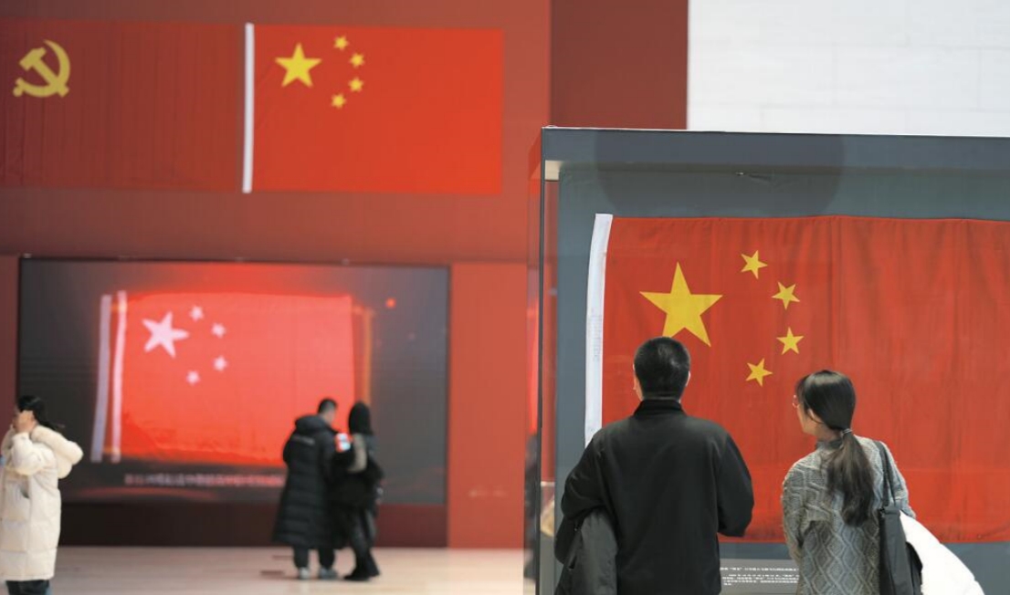 五星闪耀神州,红旗漫卷西风。今年是中华人民共和国成立75周年,中国国家博物馆依托馆藏原创策划了“风展红旗如画——馆藏红色经典文物展”,用一抹抹鲜艳的中国红、一个个激动人心的红旗故事,向公众展示中华儿女“敢教日月换新天”的壮丽诗篇。