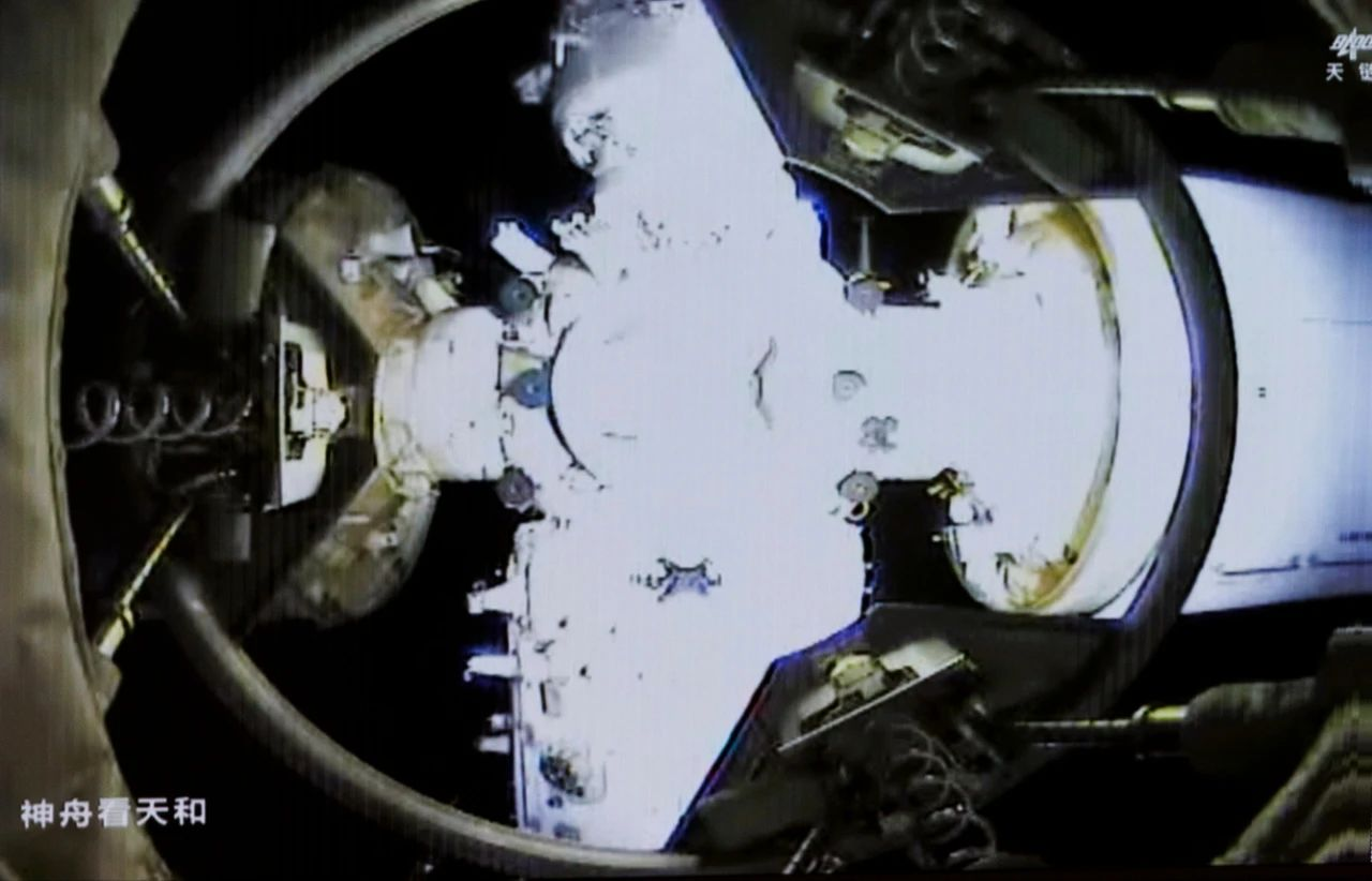 神舟二十号载人飞船入轨后,于北京时间2025年4月24日23时49分,成功对接于空间站天和核心舱径向端口,整个对接过程历时约6.5小时。随后,神舟二十号航天员乘组从飞船返回舱进入轨道舱。