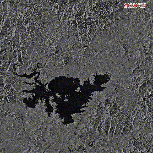 资源卫星中心紧急调度在轨卫星,通过开展卫星综合统筹、测控资源协调和成像指令修改,迅速安排高分三号卫星、高分三号02星、高分三号03星、环境减灾二号05星、环境减灾二号06星等5颗卫星对灾区进行观测。截至7月28日,已安排卫星成像15次,获取灾后有效数据23景,第一时间为国家部委及相关单位提供灾情状况信息。下图为北京密云洪涝区域雷达图像,可以整体看出密云流域受灾情况。