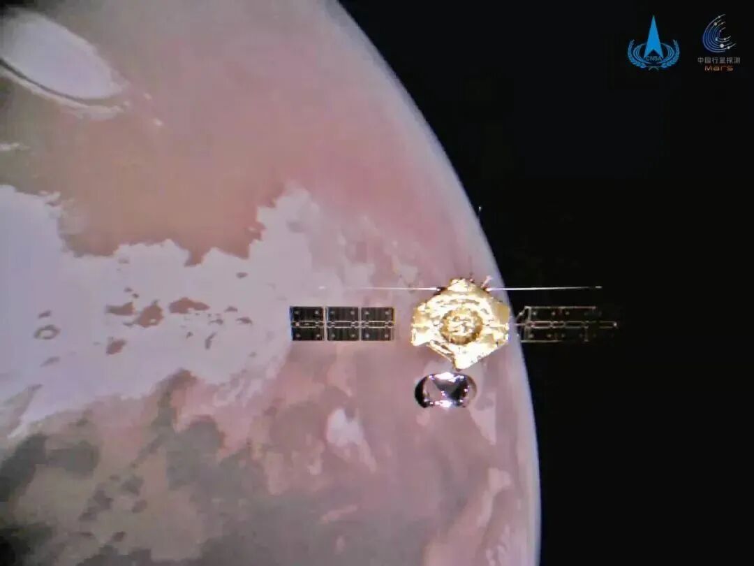 2021年2月10日,经历202天、4.75亿千米的地火转移飞行,天问一号探测器与火星交会并成功实施制动捕获,成为我国第一颗人造火星卫星;