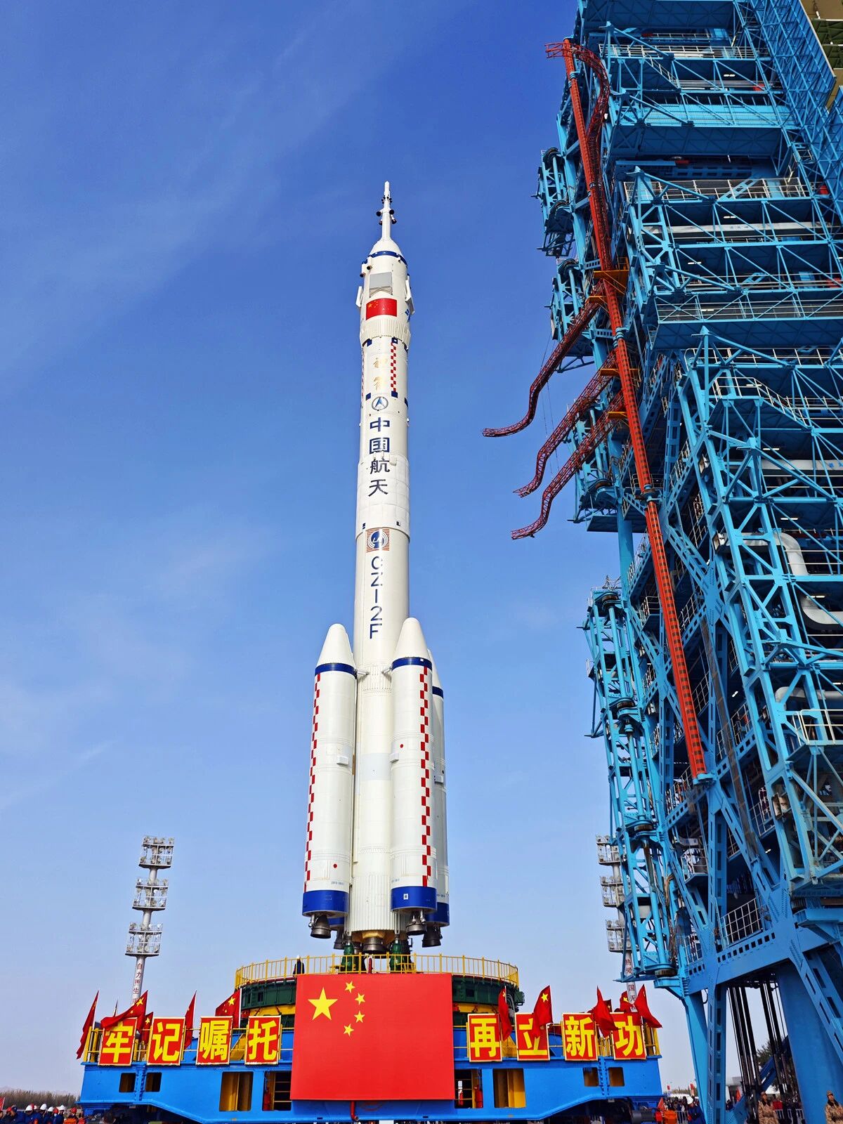 北京时间2025年10月24日,神舟二十一号载人飞船与长征二号F遥二十一运载火箭组合体已转运至发射区。