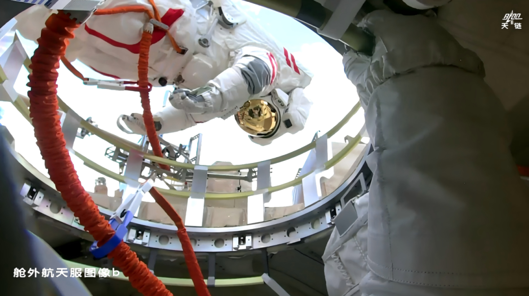 北京时间2025年12月9日18时45分,经过约8小时的出舱活动,神舟二十一号乘组航天员张陆、武飞、张洪章密切协同,在空间站机械臂和地面科研人员的配合支持下,充分发挥人在舱外第一现场的能动作用,顺利完成了神舟二十号飞船返回舱舷窗巡检拍照、空间站空间碎片防护装置安装、温控适配器多层罩更换等任务。出舱航天员张陆、武飞已安全返回问天实验舱,出舱活动取得圆满成功。