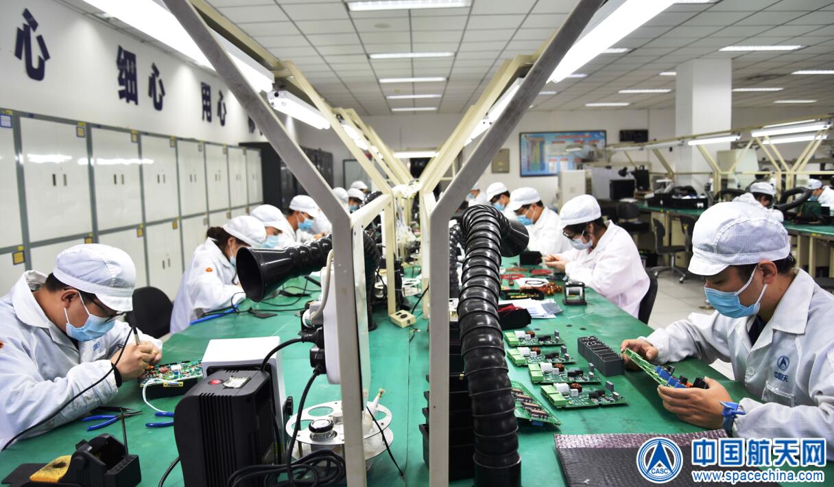 图为该所电装车间职工正在进行单板装配工序作业。 董振兴 摄