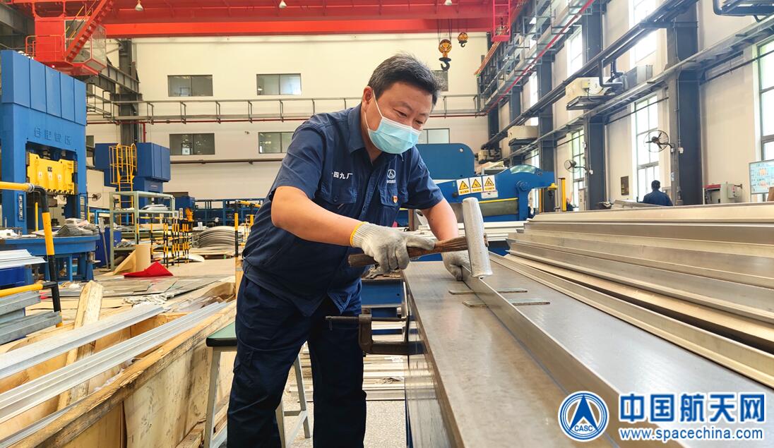 在航天发展投资市场八院149厂钣金厂房,“你一锤,我一压,他一刀”成为新的生产场景。此刻,上海工匠、特级技师龚雄正带着团队开展各项科研生产任务。