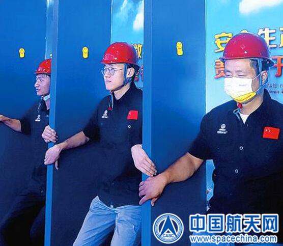 图为新员工体验安全帽和安全鞋撞击过程。吕婧 摄