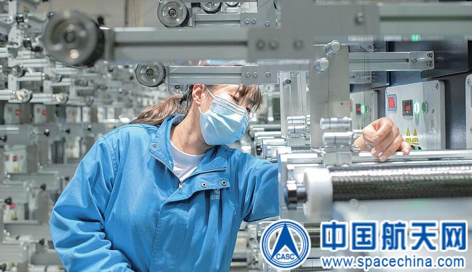 图为该公司生产线工人正在进行风电产品原材料生产。段秀琳 摄
