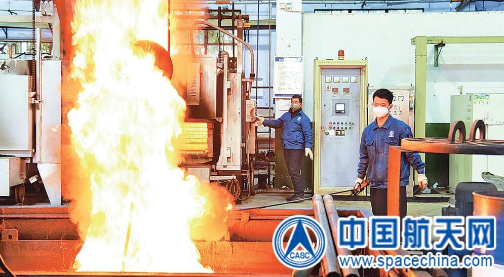 图为车间热处理工配合完成多组零件淬火操作。刘涛 摄