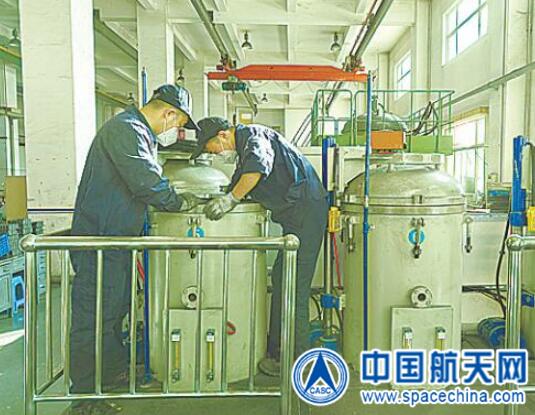 图为四院中天火箭公司工人对装进高温炉内产品进行开炉前检查,确保产品成品率。李秦巍 摄