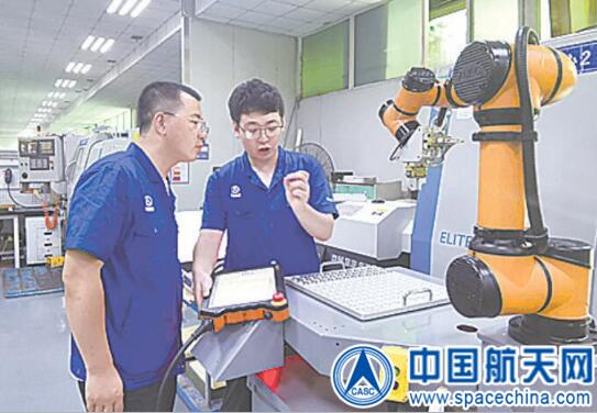 图为四院401所工艺和操作人员讨论无人值守机器人拿取零件的工艺路径。胡俊 摄