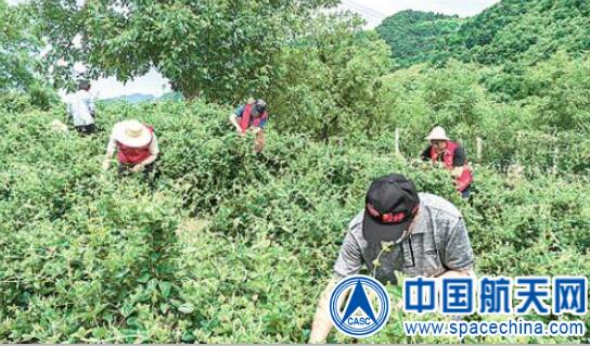 图为五院西安分院员工志愿者开展金银花抢收工作。张华强 摄