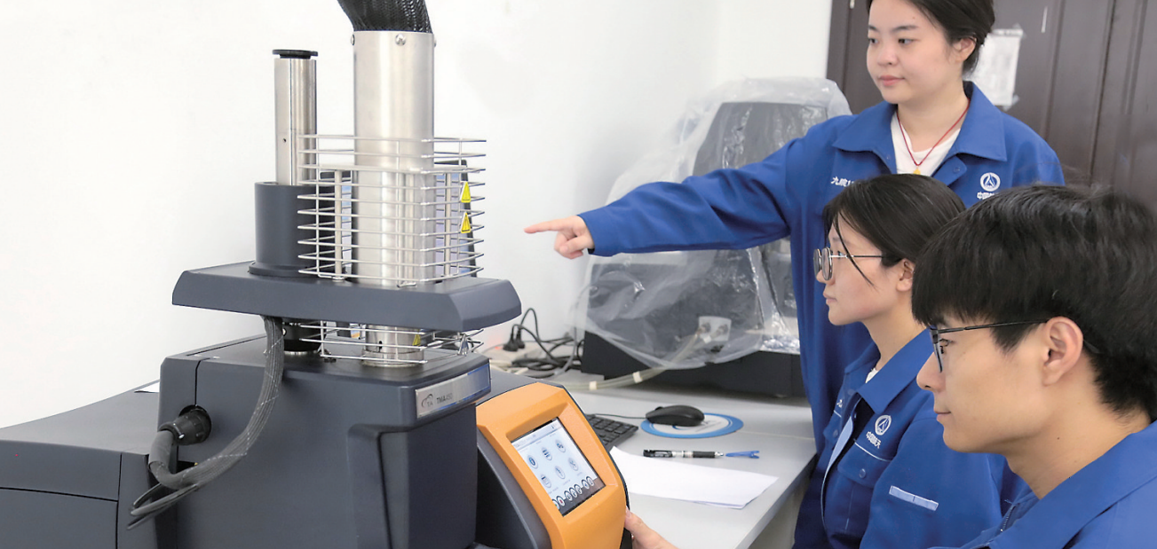 图为技术人员针对仪表胶粘剂开展线膨胀系数检测及数据处理。张晓玲 摄