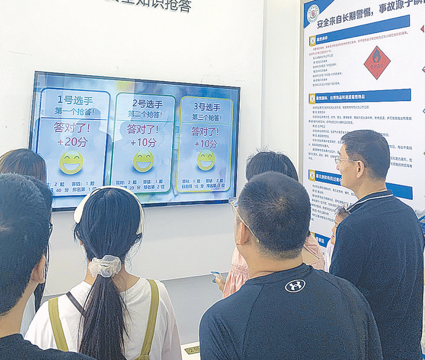 图为员工们正在参与危化品知识无人主持抢答活动。李松 摄