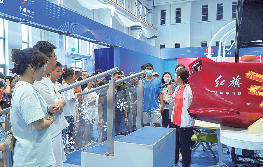 活动现场,职工与家属零距离体会冬奥雪车模拟训练装置带来的震撼,身临其境感受以体育风洞为代表的航天技术赋能体育的魅力。