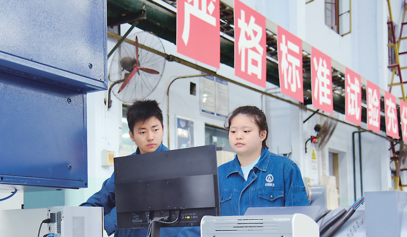 图为环境试验工正在进行产品冲击响应谱试验。冉精忠 摄