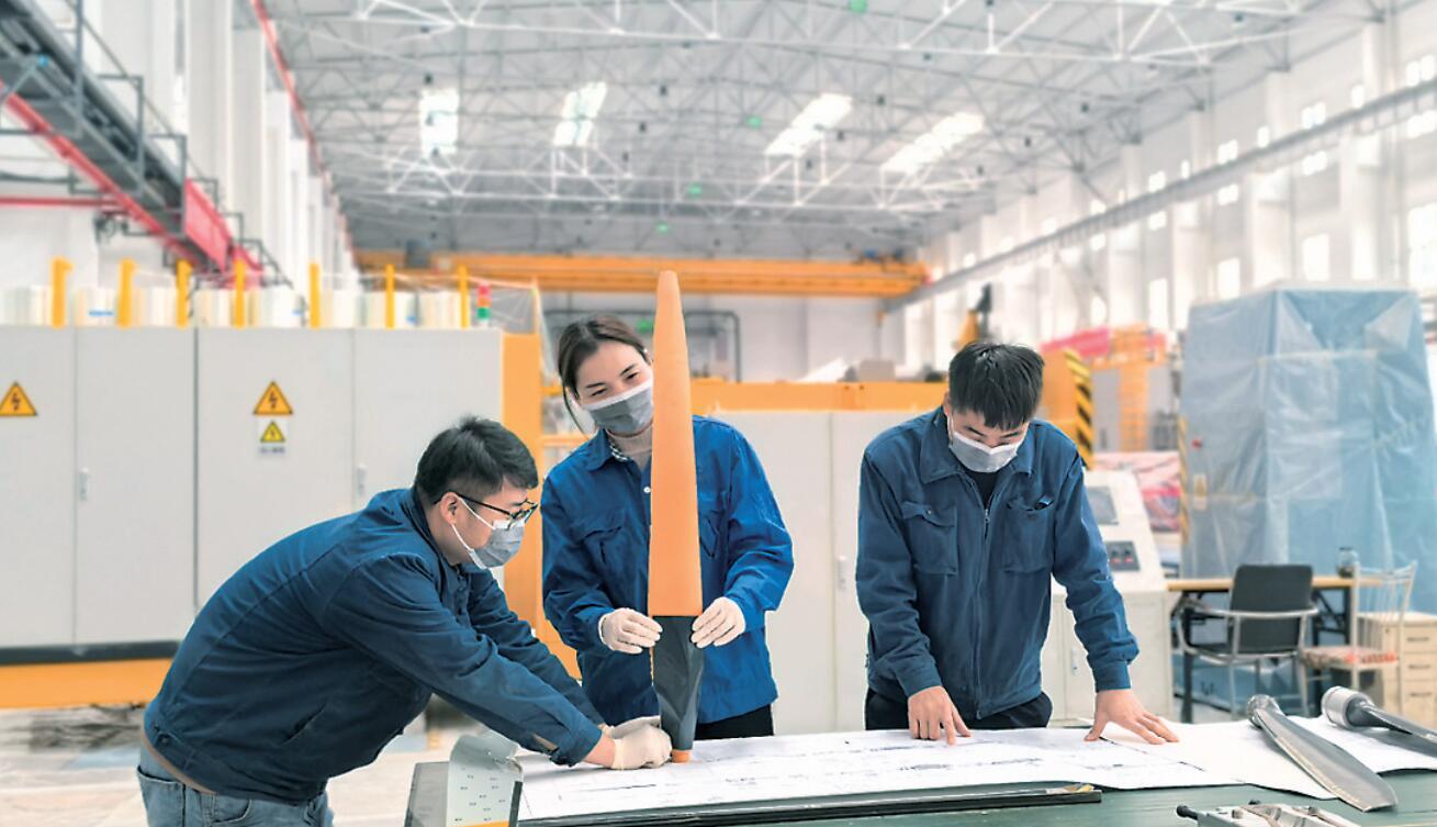 图为项目研制团队正在讨论螺旋桨成型方案。段秀琳 摄