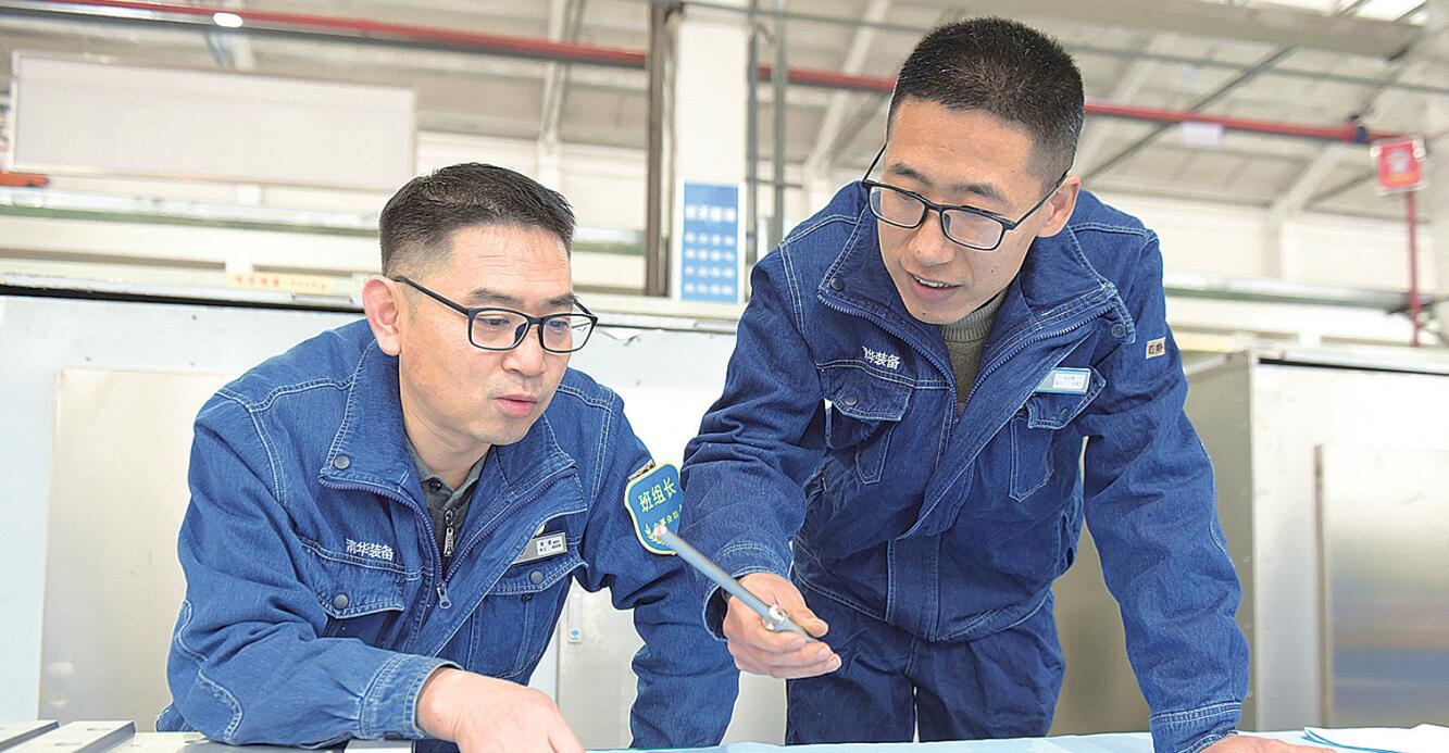 图为工厂职工对照易错项目和生产图纸对型号产品零部件进行严格把关。杨陈毅 摄