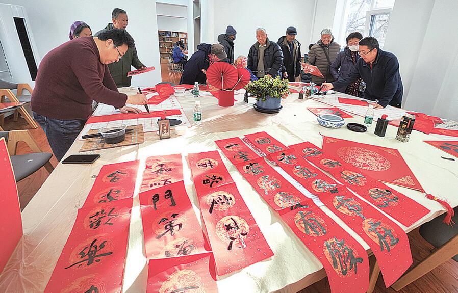 神舟书画协会会员们挥毫泼墨,笔锋游走如龙蛇,一撇一捺间尽显深厚的书法功底,将对美好生活的祝愿融入一个个春联和“福”字之中。