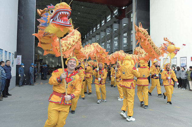 图为舞龙舞狮队伍为职工现场表演。杨陈毅 摄