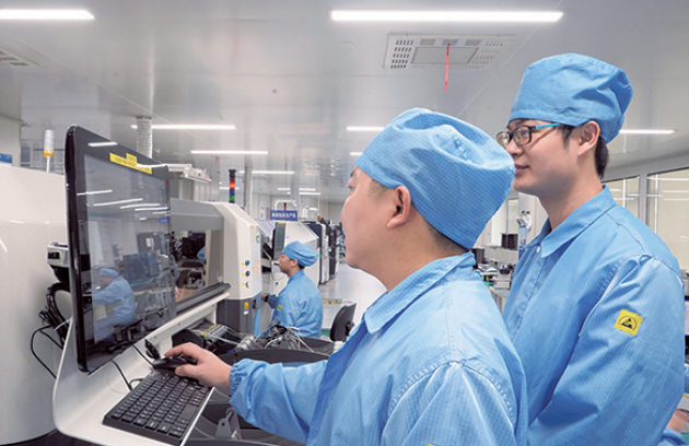 自动化贴片机的机械臂抓取各种大小不一的元器件,快速准确地放置在PCB焊盘上,操作人员将一张张PCB印制电路板放置在自动装板机上,历经贴片、焊接、点胶、测试、检验等流程后,一块完整的印制板在“工艺之光QC小组”自主开发建设的数字化SMT线上诞生了。“生产效率最高提升了20倍,且每一步操作的精度与准确度极高,让产能和信息化管控水平都实现了精益化升级。”张家霖介绍。