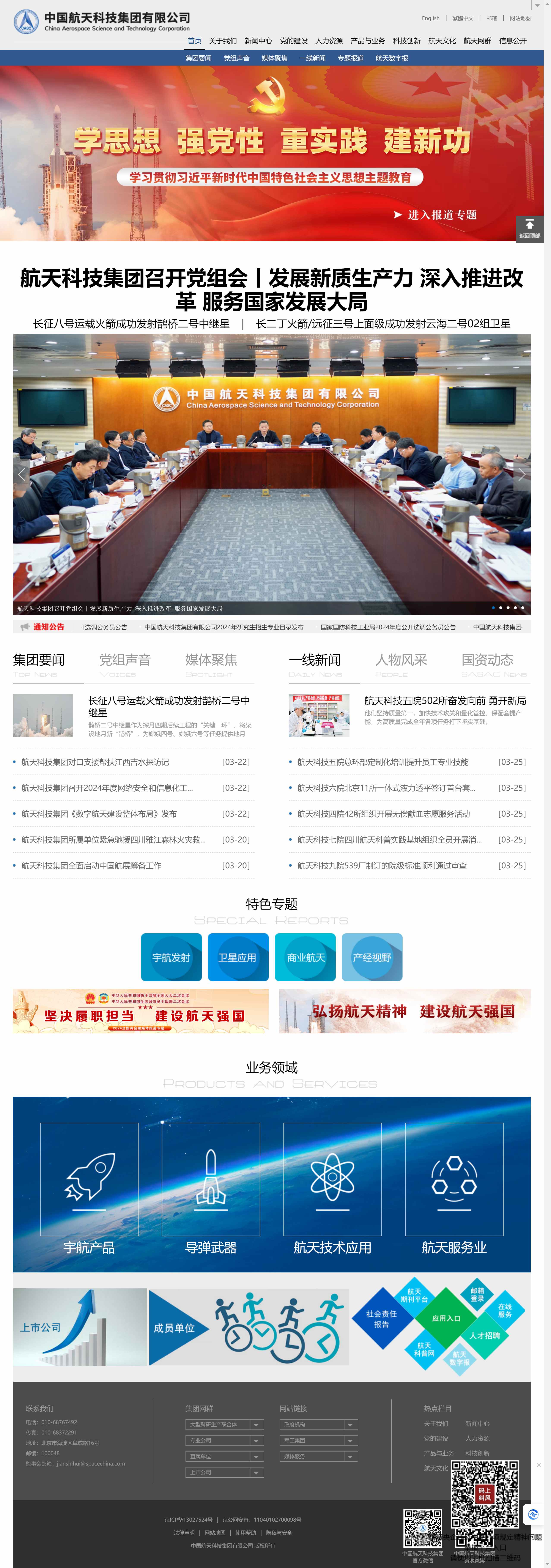 中国航天网作为航天发展投资市场门户网站,是集团公司核心的信息化平台和主要的网络媒体,在发布权威信息、宣传发展成就、展示航天文化特色、服务生产经营等方面发挥了重要作用。
