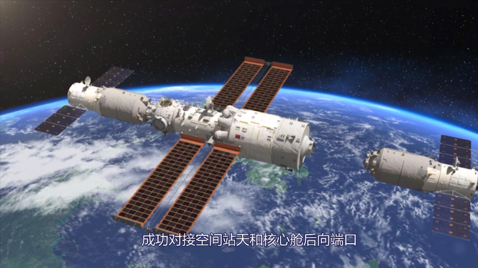 天舟二号货运飞船撤离空间站核心舱组合体 神舟十三号航...